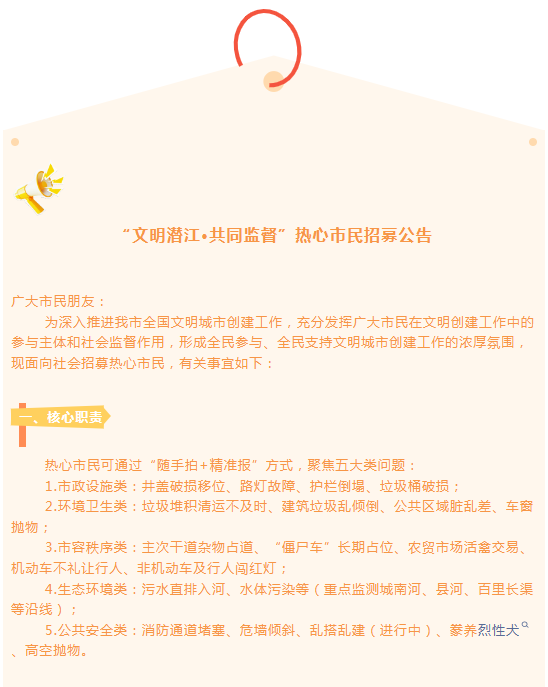 “文明潜江·共同监督”热心市民招募公告来了!