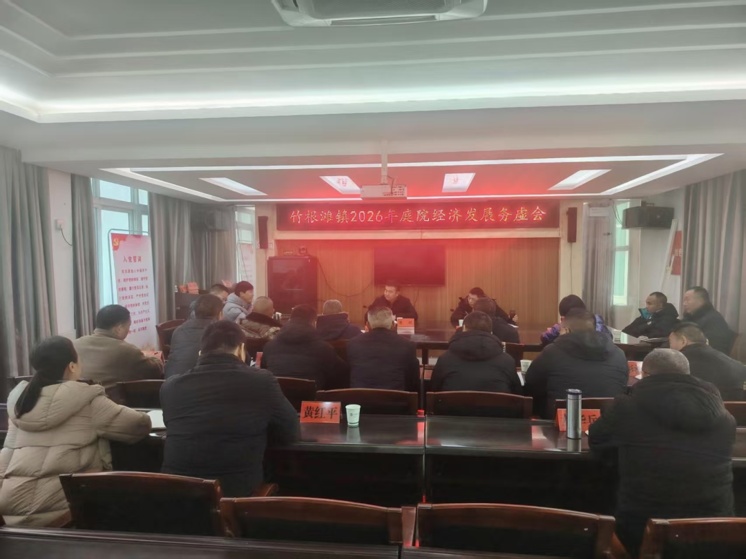 为激活乡村闲置资源、拓宽农民增收渠道,扎实推进庭院经济高质量发展,助力乡村全面振兴,1月5日上午9:00,竹根滩镇在镇政府五楼会议室召开2026年庭院经济发展务虚会。镇党委书记朱耿、镇长李晨出席会议,镇经济发展办公室(农业农村)、农业农村服务中心、镇经管站等部门负责人,王拐村、康岭村、群联村等8个村党支部书记,米斯粥合作社、望家欢公司等8家农业经营主体代表及河中和超市代表参加会议。会议由李晨镇长主持。