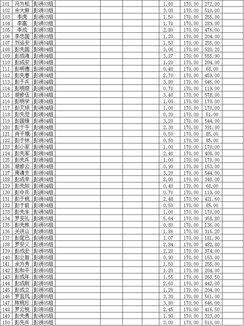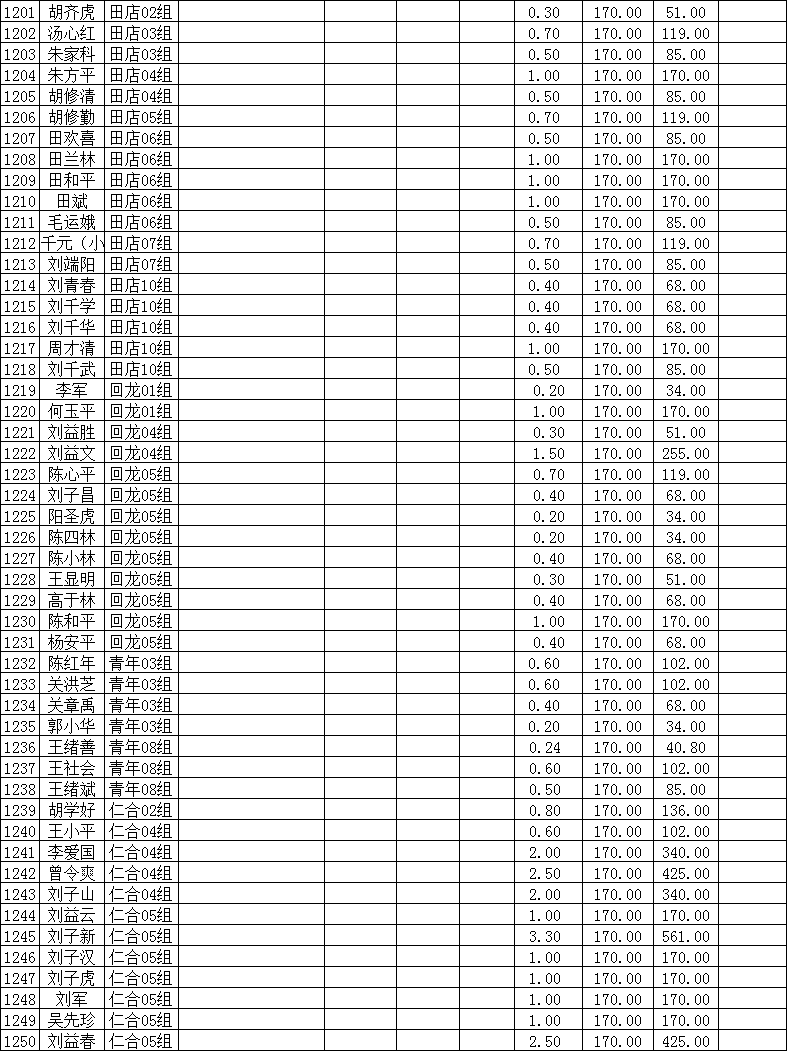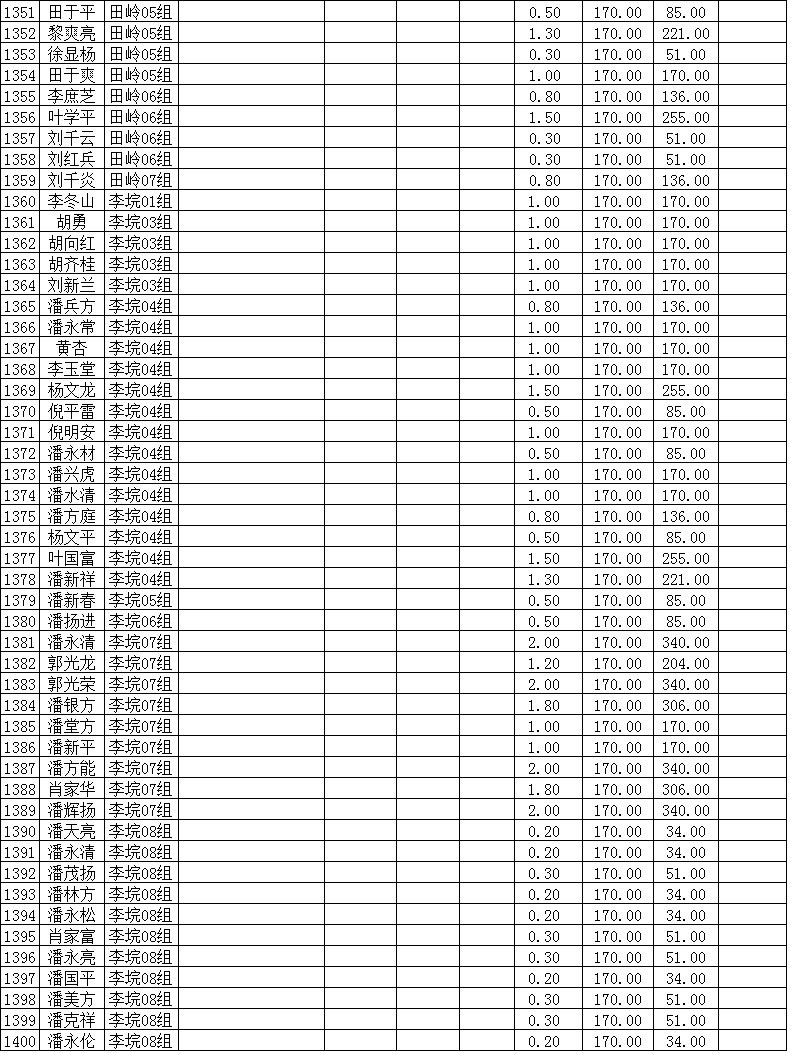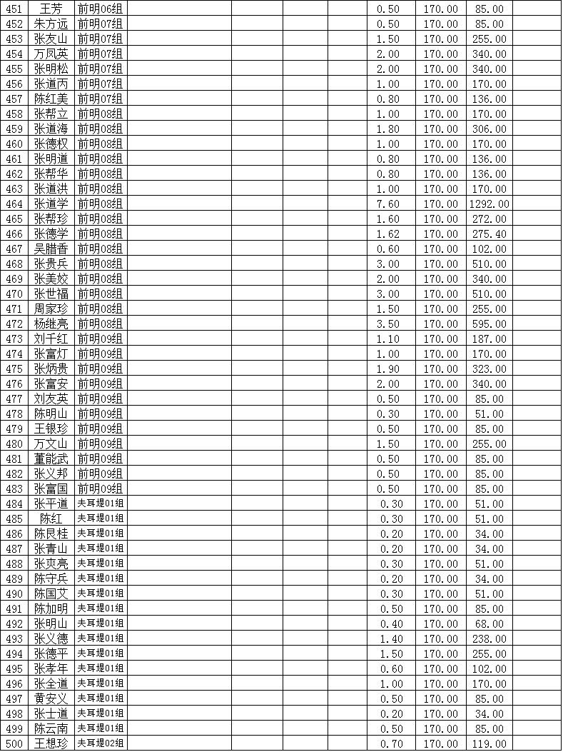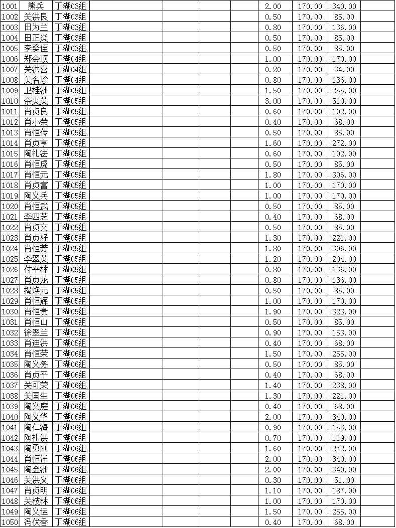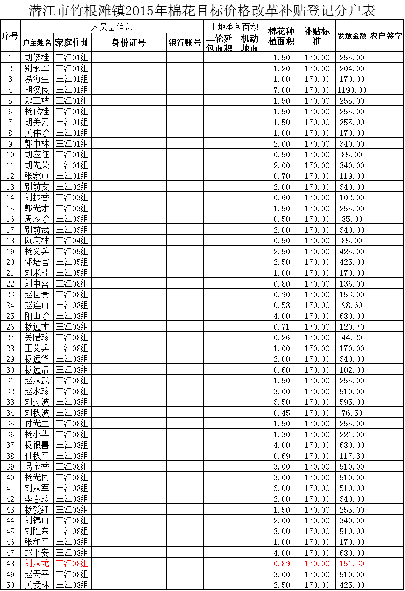 潜江市竹根滩镇2015年棉花目标价格改革补贴登记分户表