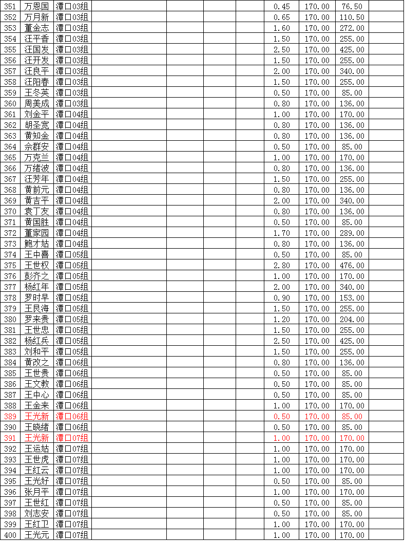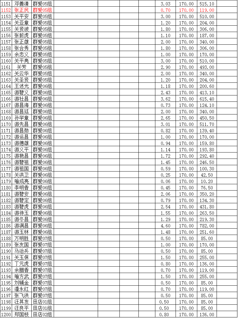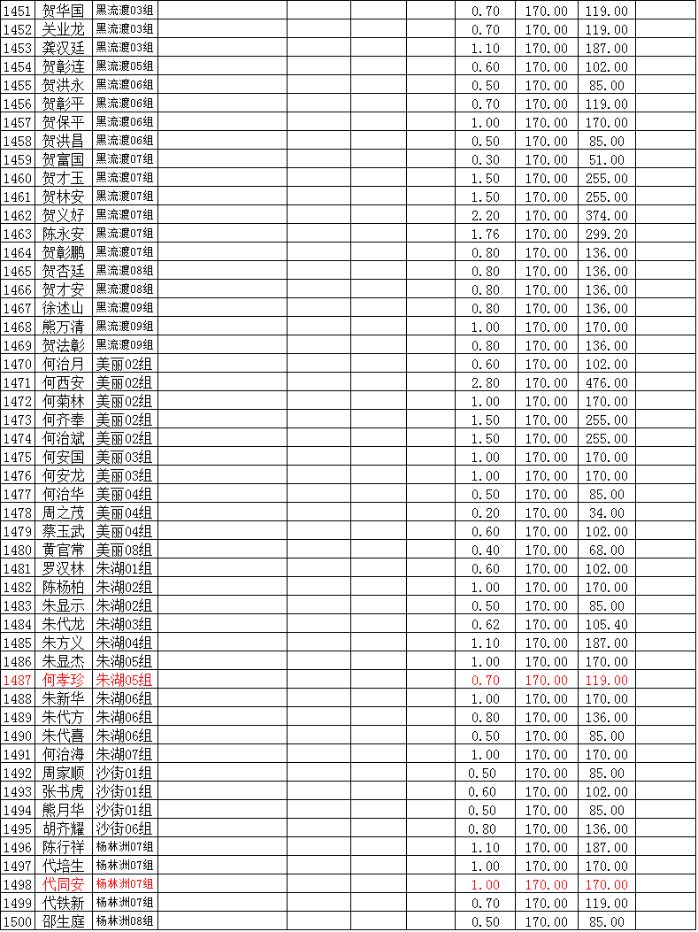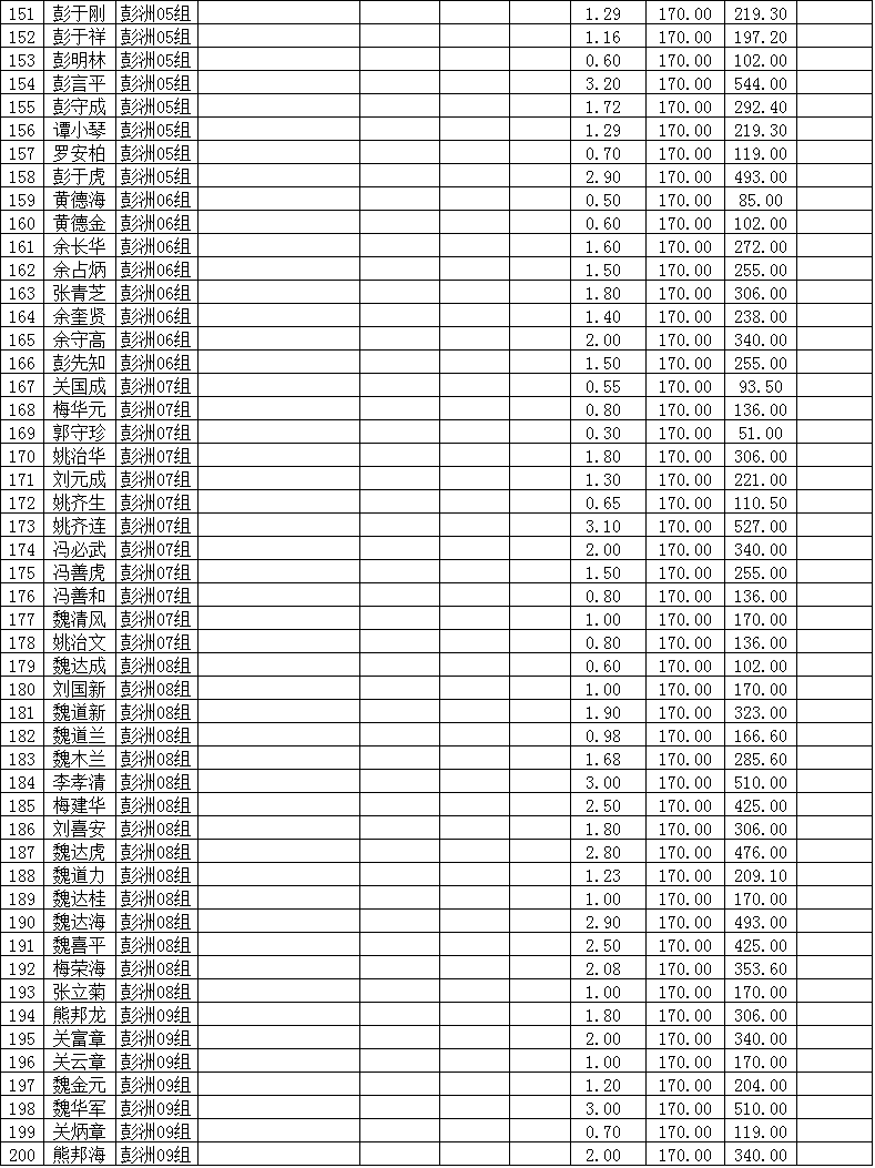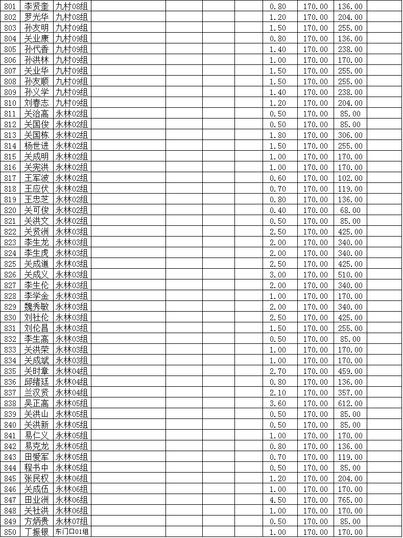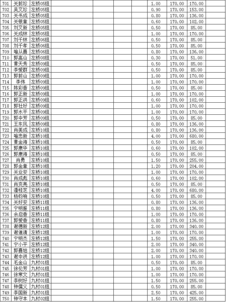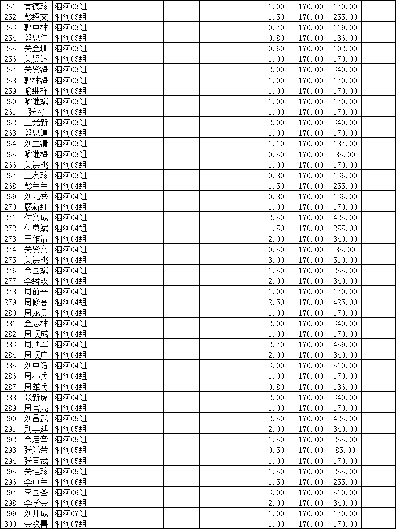 潜江市竹根滩镇2015年棉花目标价格改革补贴登记分户表