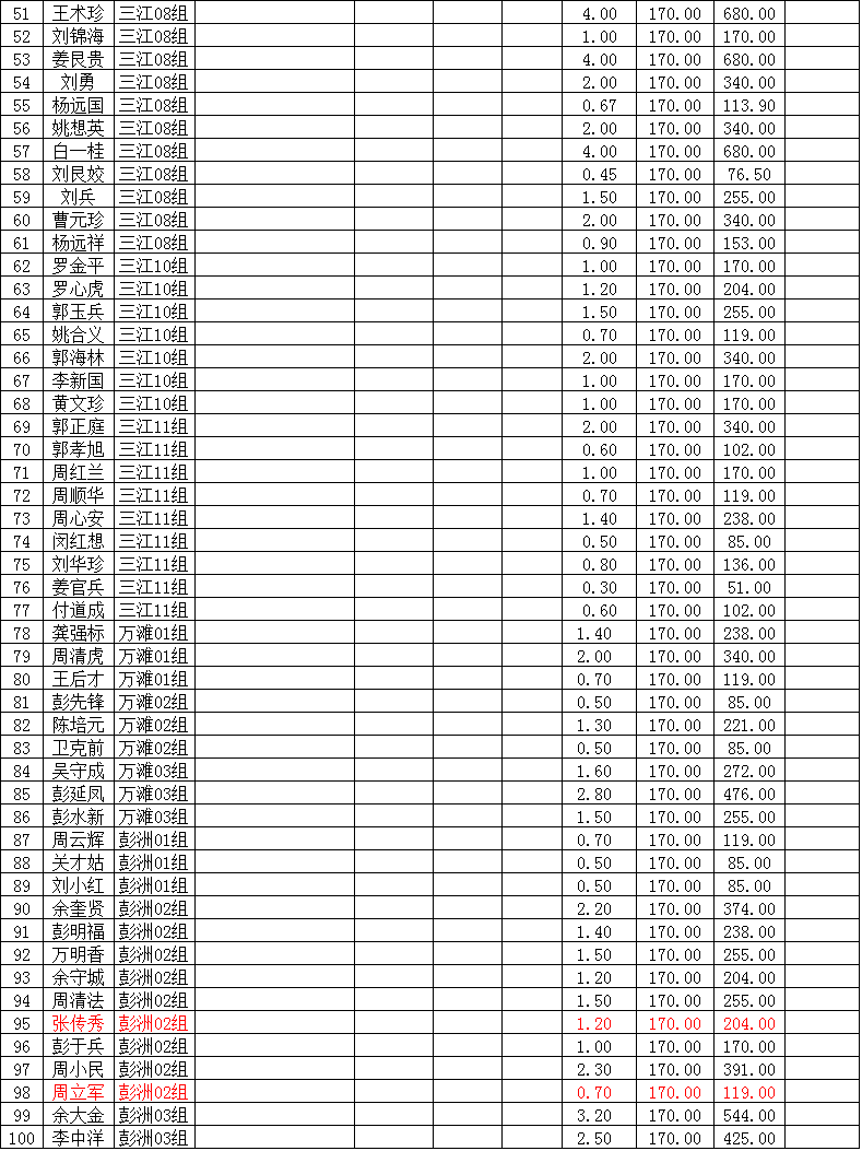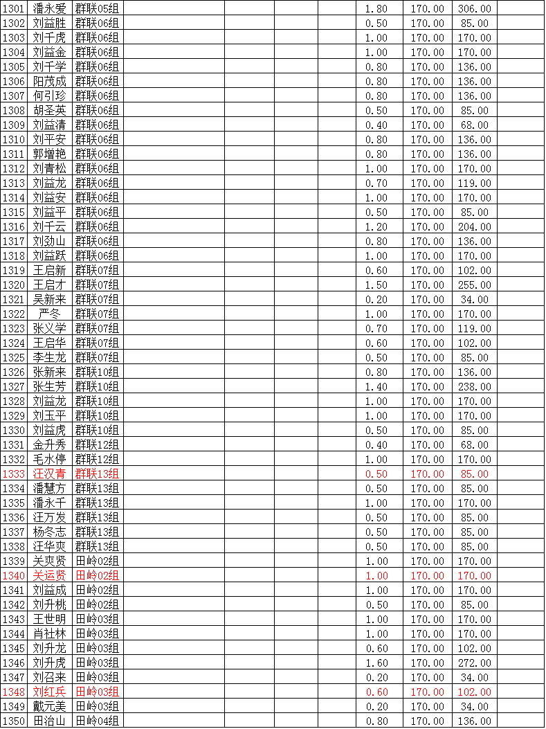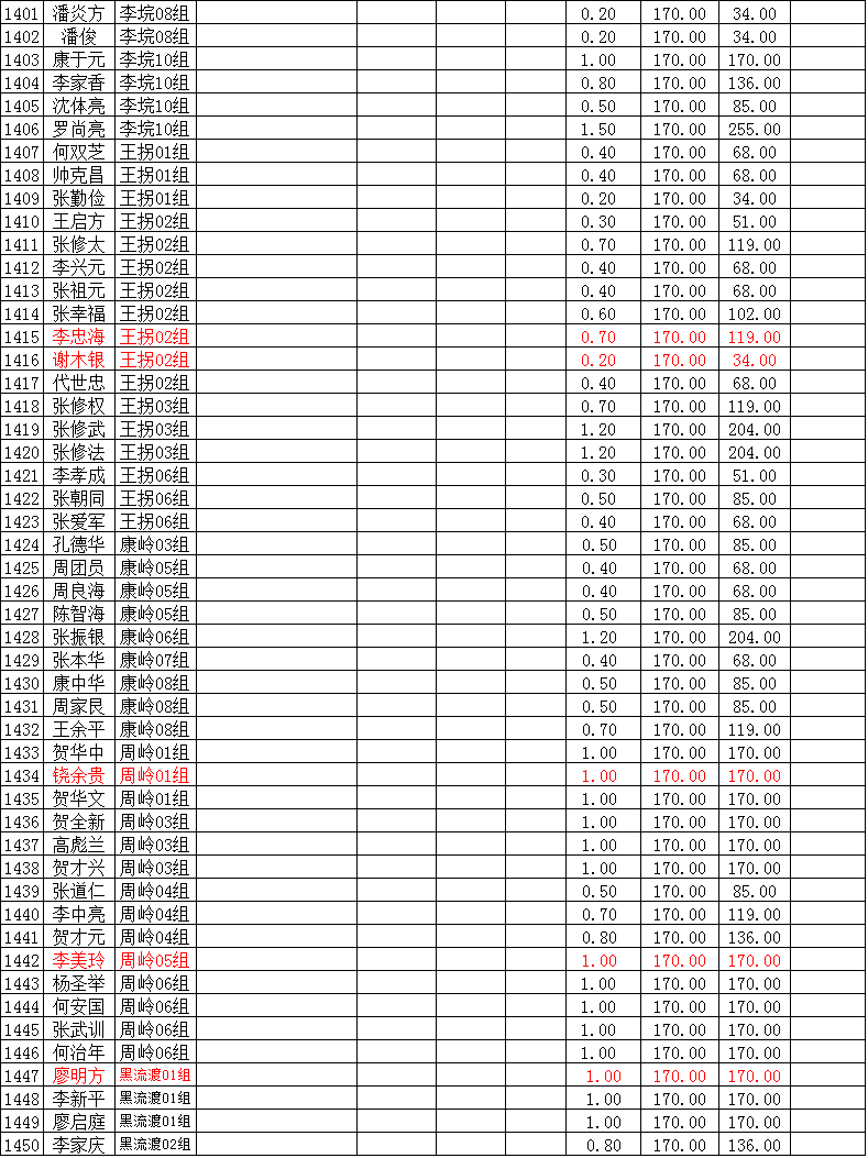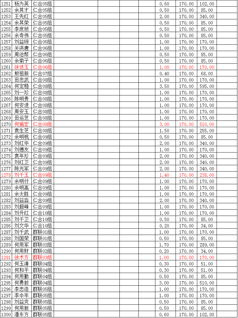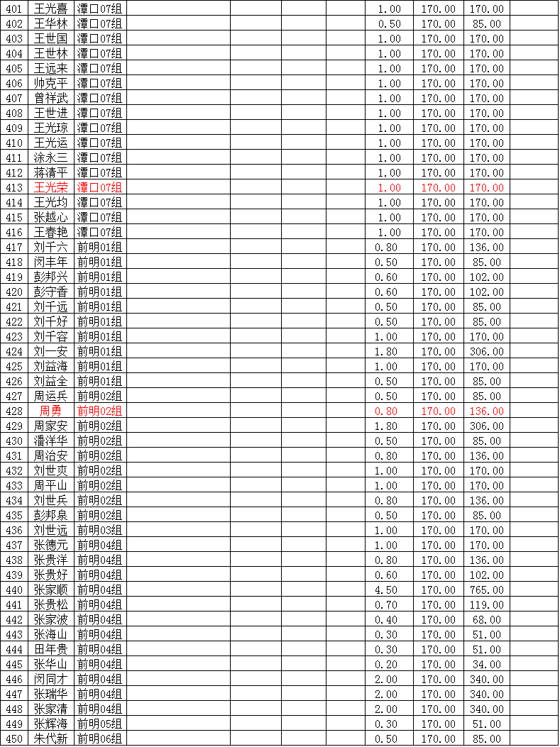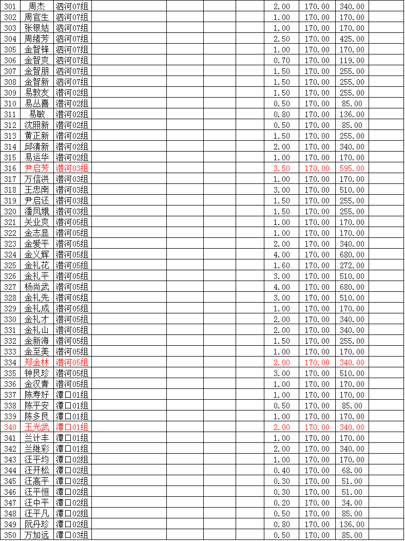 潜江市竹根滩镇2015年棉花目标价格改革补贴登记分户表