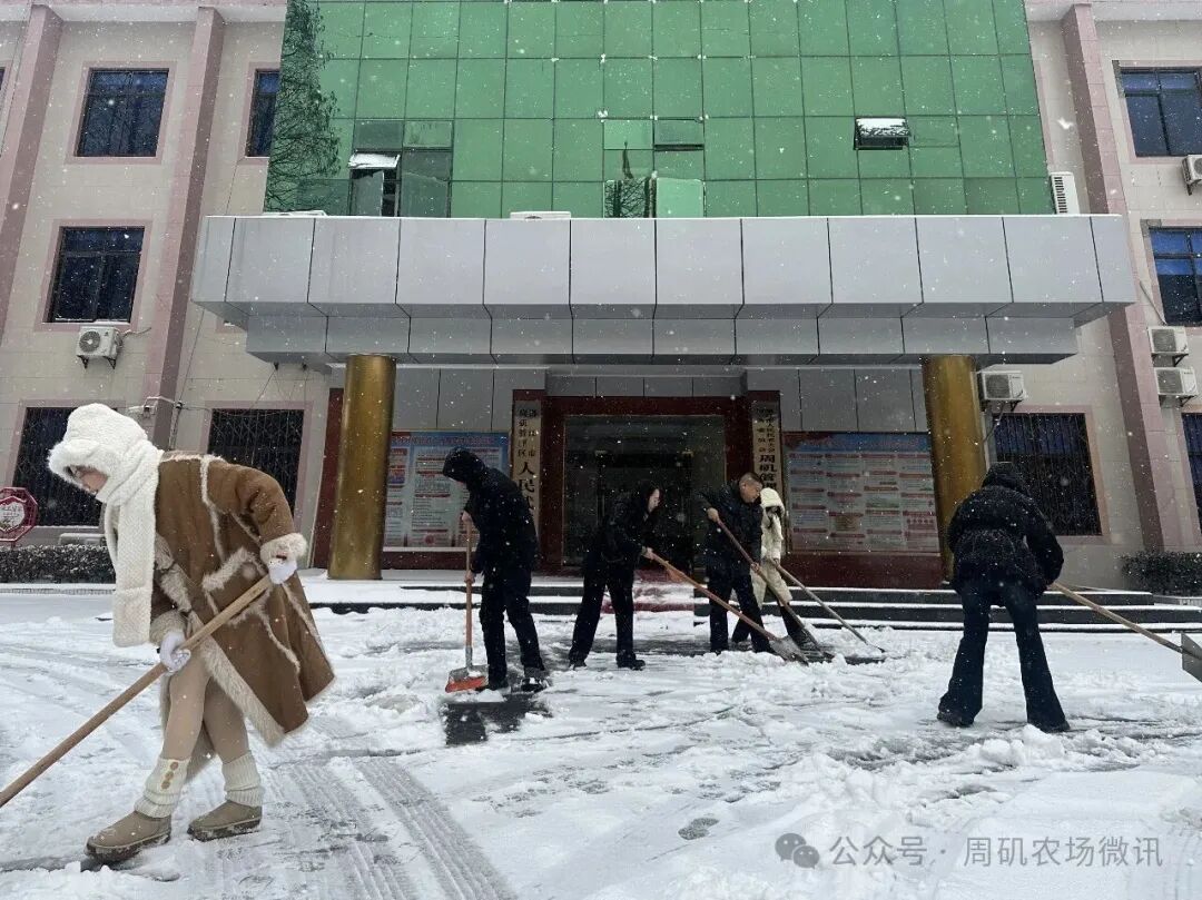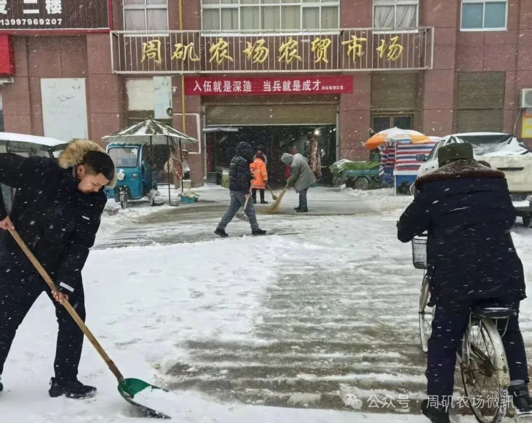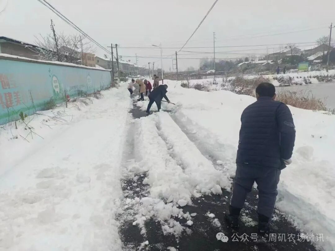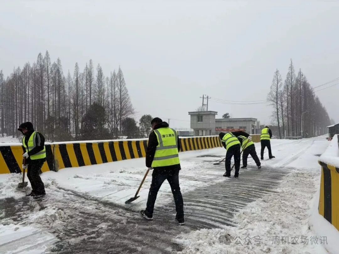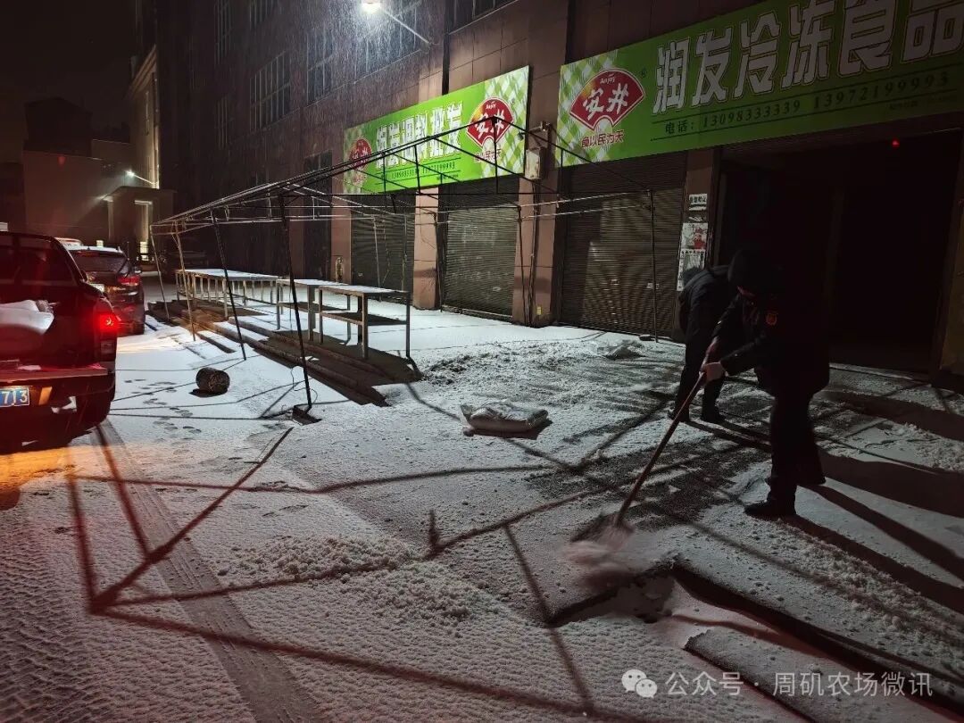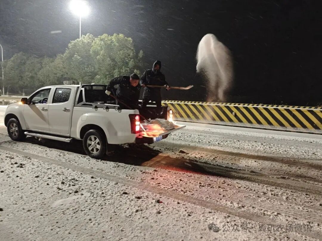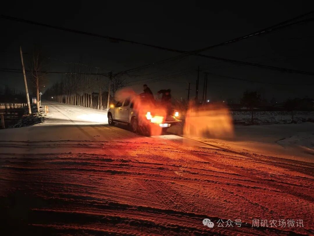 应急响应启动后,管理区第一时间调配人力物资,展开处置工作。应急队伍连夜奋战在主干道路与关键节点,30余人次迎着风雪作业,在2公里主干道及5座桥梁精准撒布80余袋融雪剂,有效阻断了路面结冰进程。同时,集贸市场等人员密集区域也同步被纳入重点处置范围,通过人工清雪与工具作业相结合的方式,为居民出行扫除障碍。