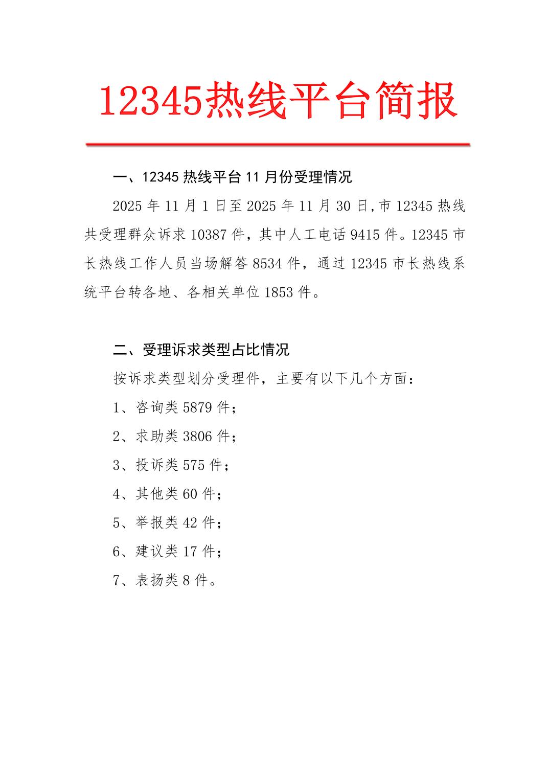2025年11月12345热线平台简报